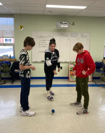 Dernier arrêt : l’Ontario, où l’artiste Chloé Thériault se rendait dans les classes pour donner des formations d’improvisation, aussi appelée « impro » ! Partout au Canada, cette pratique permet aux jeunes de s’exprimer en français.