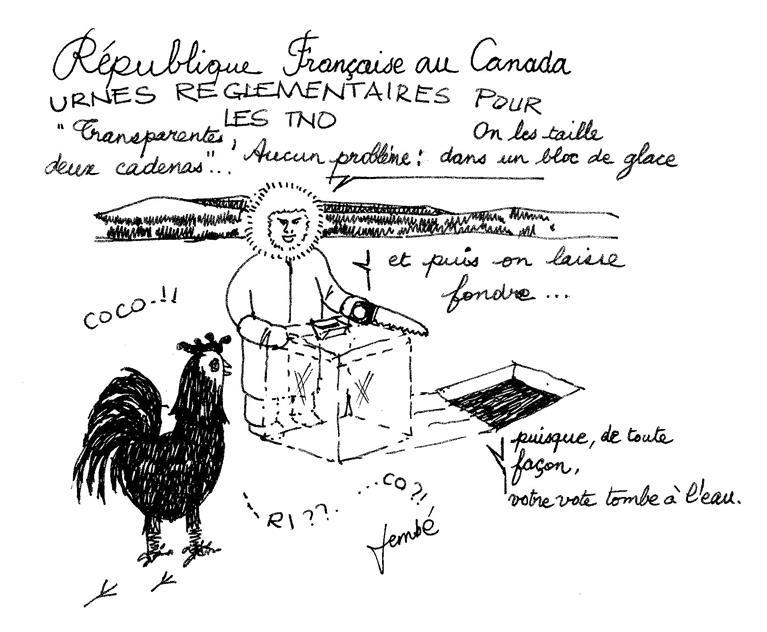 Pour ne pas diriger davantage l’atelier, on s’en doute, les deux compères ont alors ouvert le débat. Les commentaires fusent : « Je connais des groupes à Yellowknife qui sont des anarchistes. » « Les coopératives de pêcheurs de la Nouvelle-Écosse fonctionnaient selon un système proche de l’anarchie. » « Les Premières Nations vivaient sans leaders avant que l’homme blanc ne viennent leur demander s’il pouvait parler au chef. » « Peu importe pour qui tu votes, le gouvernement gagne toujours. »