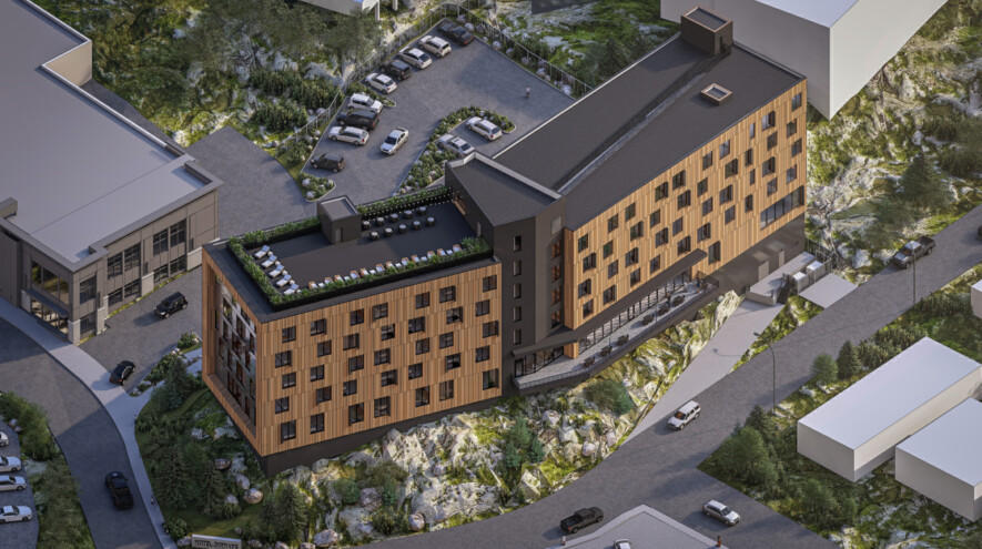 Ce rendu illustre le projet d’hôtel de 150 chambres que Nunastar souhaite construire à côté de l’hôtel Explorer, sur la 49e Avenue.