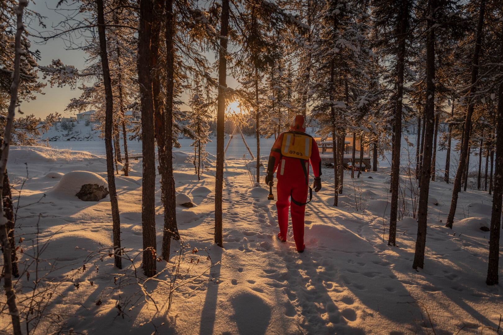 Par un samedi matin vif, alors que le thermomètre affichait –22 °C et que quelques éclats de lumière rasante traversaient le ciel pâle, Médias ténois a accompagné les bénévoles de la Great Slave Snowmobile. L’objectif de l’association, récolter les dernières vérifications de l’épaisseur de la glace. L’air mordant, mais agréable, et ce froid sec revigorant sans être repoussant, donnent envie de repartir à la découverte des lacs tout juste saisis par l’hiver.