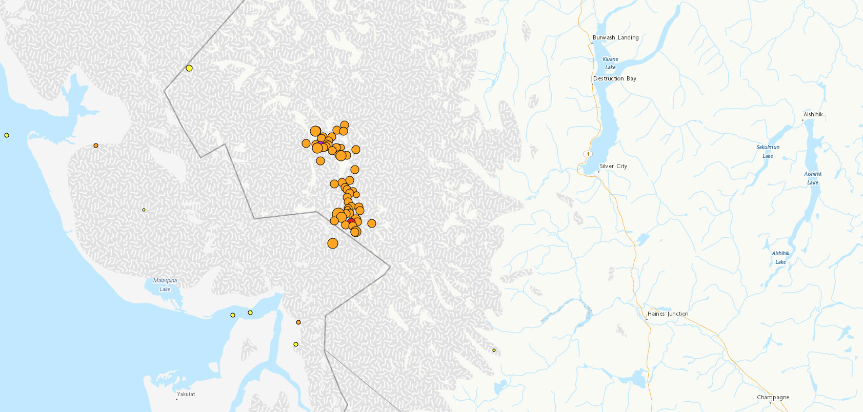 L’épicentre situé à 248 km à l’ouest de Whitehorse, au cœur du champ glaciaire du Kluane, a été ressenti dans plusieurs collectivités du Yukon comme à Burwash Landing et dans la capitale. Les experts de l’United States Geological Survey (USGS) ont déterminé que le séisme s’était produit à une profondeur de 10 kilomètres, du côté canadien de la frontière avec l’état de l’Alaska. Le séisme a été décrit comme peu profond, ce qui a accentué l’intensité des secousses ressenties.