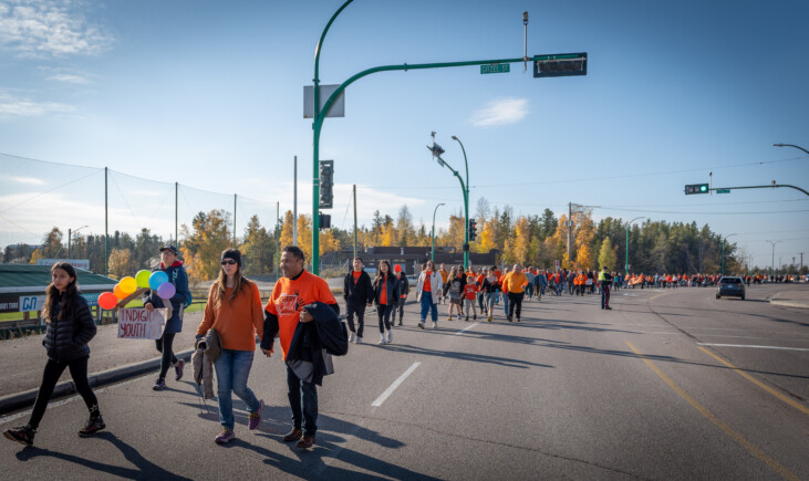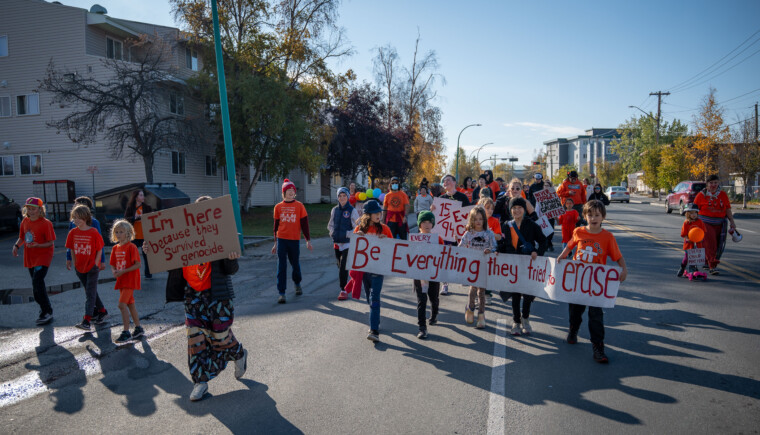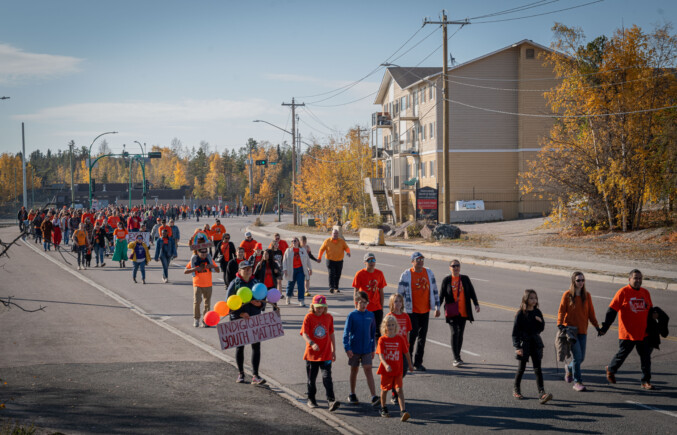 La Journée nationale de la vérité et de la réconciliation et la Journée du chandail orange ont été soulignées lundi par une marche rassemblant une foule nombreuse au cœur de Yellowknife.