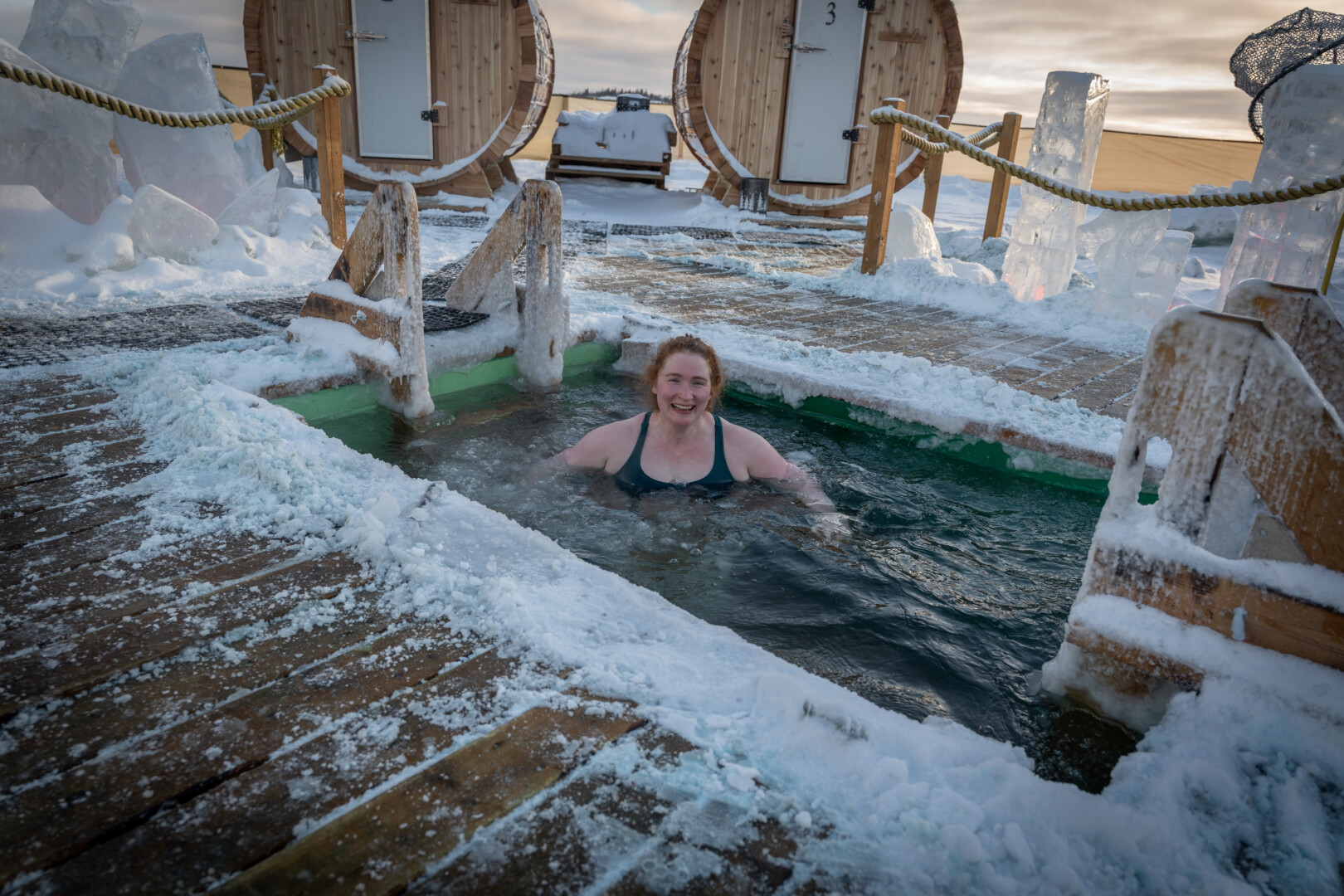 La première saison était modeste : un sauna, des tentes de pêche sur glace servant de vestiaires, et un bassin de bain froid fabriqué à partir d’un réservoir en fibre de verre récupéré. La sécurité et l’accessibilité étaient prioritaires. « On essayait de créer la manière la plus accessible possible de vivre cette expérience », explique le propriétaire avant d’ajouter : « Et la plus sécuritaire. »