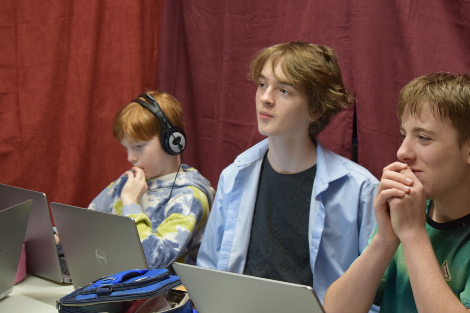 Zachary, Olivier et Jacob qui sont attentifs pour que leurs prochains épisodes roule comme sur des roulettes.